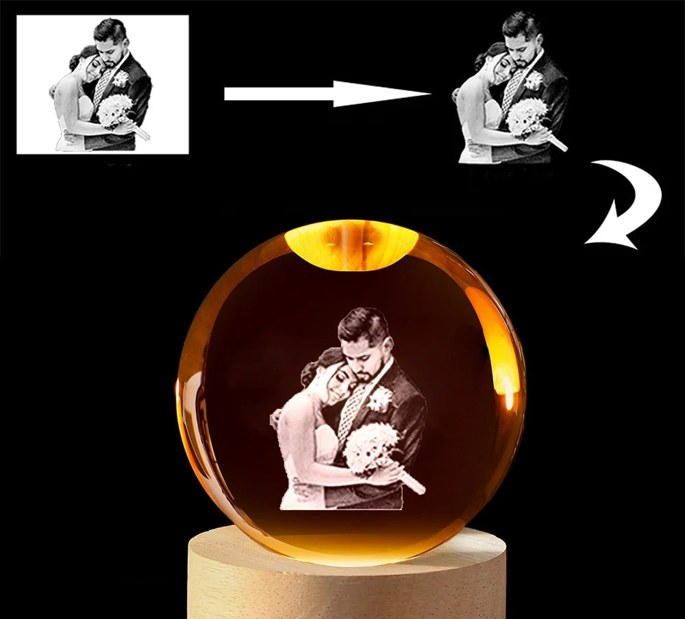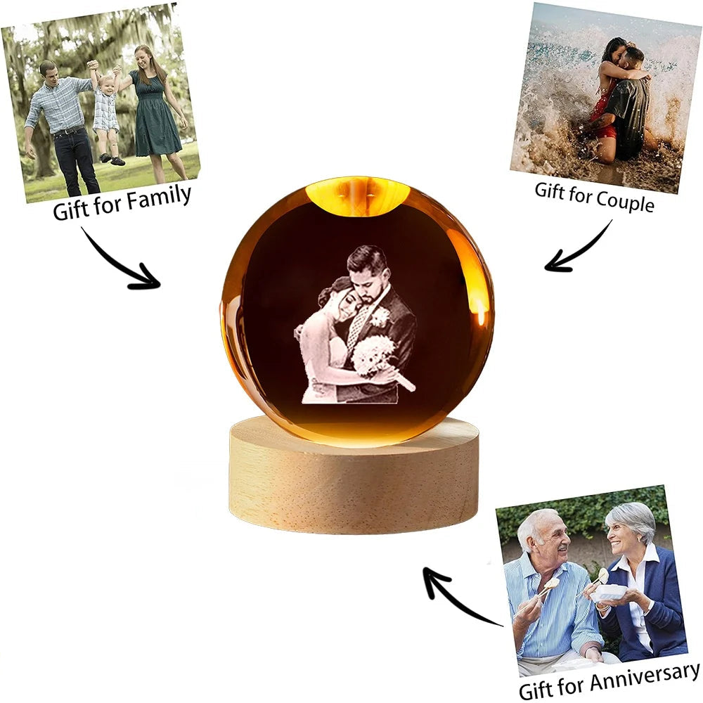 Display photos of your cat, dog, or other beloved pets in a stunning 3D crystal ball design.