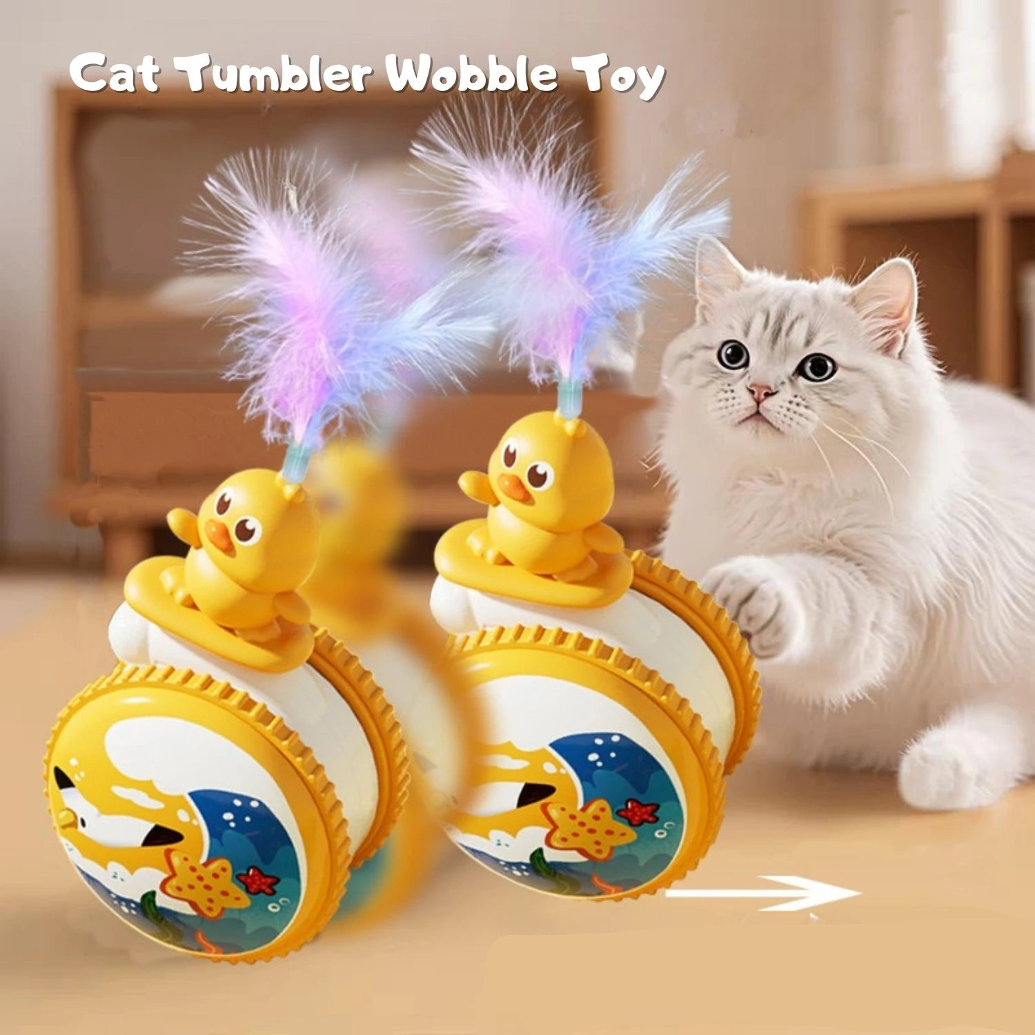 Interactive Cat Wobble Toy with Feathers & Plush Ball